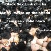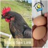 The Sex Link Hybrid is the result of crossing two heritage purebred poultry standard chicken breeds together. One of our best Hatchery® production/bloodlines of Rhode Island Red chicken rooster and one of our best Hatchery®’production/bloodlines of Barred Rock chicken hen and cross them to give you this outstanding brown egg-laying hen offspring. The baby chicks for sale from this original cross are color sexable chicks- the grown roosters have faded barred with light colored neck hackle feathers, grown pullets or hens are black with red mixed in their neck hackle feathers. This hybrid chicken breed makes for very vigorous chicks, rugged brown egg laying hens and good cockerel chicken fryers. Although not a show chicken, they are great for raising hens for eggs and pet chickens for the backyard or farm. Many customers like the Black Sex Link chicken for raising free range chicken eggs or organic free range chickens. Hatchery® ’s chicken hatchery produces many of these chicks for customers at our store and for chickens for sale online. Be sure to reserve an order for these Black Sex Link baby chicks for sale.