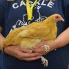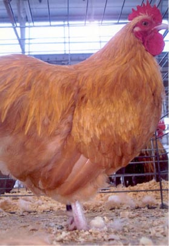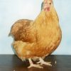 A miniature size of the Buff Orpington Standard chicken and admitted to the American Poultry Standard of Perfection in 1960, this poultry variety of the Orpington chicken breed makes for a good backyard chicken and egg production. They have a very docile temperament, withstand cold weather well and are adaptable to either confinement or free range. Though when around other breeds of chickens they will be bullied, they are not aggressive.