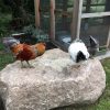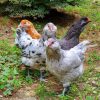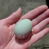 The “Easter Egger™” chicken originally came from Chile in South America, discovered by the Araucana Indians. The true pure Araucana chicken is rumpless (tailless) , has a small curling tuft of feathers next to each ear and come in different pure color types. The true pure Ameraucana chicken has a tail, full beard and comes in pure color types. The Easter Egger chicken is different because they have a full beard under the beak rather than a tuft and have a tail rather than rumpless and do NOT have pure color types. Hatchery® breeding program objectives for the “Easter Egger™” chickens are to produce chickens with a wide variety of feather colors, patterns and feather combinations of colors with a full beard under the beak and high egg production of colorful egg shells. The color of their egg shells vary from pale blue chicken eggs to dark blue to various shades of green and a few light brownish/pink eggs. The meat is delicious and it has a taste similar to quail. We do not offer a specific color variety of this breed; however we do breed for a wide variety of colored feathers and egg colors. The Araucana chicken and Ameraucana chickens have a number of different color patterns being worked on all across the USA and are being shown in poultry shows. The Easter Egger™ chickens are great chickens for backyards, chicken coops, larger chicken houses and for raising free range chickens.