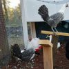 A very common Egyptian fowl (chicken) raised along the Nile River for centuries, Egyptian Fayoumis chickens lay tinted white eggs. They mature very fast with males trying to crow at an unbelievable 5 to 6 weeks. Feathering is silver and white on black background. They have a single comb, bright red wattles, white spot in their ear lobes and slate blue skin. They are very hardy foragers, do well free-range and they are better at flying than most chickens. The Egyptian Fayoumis chicken is noted for being a predator resistant chicken to run on your farm or acreage. They also do well within a large pen or barn and like to roost as high as they can.