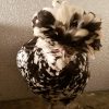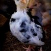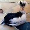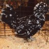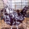 The Mottled Houdan chicken breed was imported from the town Houdan (France) into England around the 1850’s. The Mottled Houdan chicken was introduced to America in 1865 and later in 1874 it was admitted into the American Standard of Perfection. This unique chicken breed has a fifth toe, is an old French breed, has a wide cavernous nostril, a large crested feather head and is a white egg layer. The females are extremely docile and gentle and make good pets. Not particularly a good free range chicken if you have predators because of their top knot that blocks some of their vision. They are known as the “French Hen” and make a great backyard chicken for pets and show.